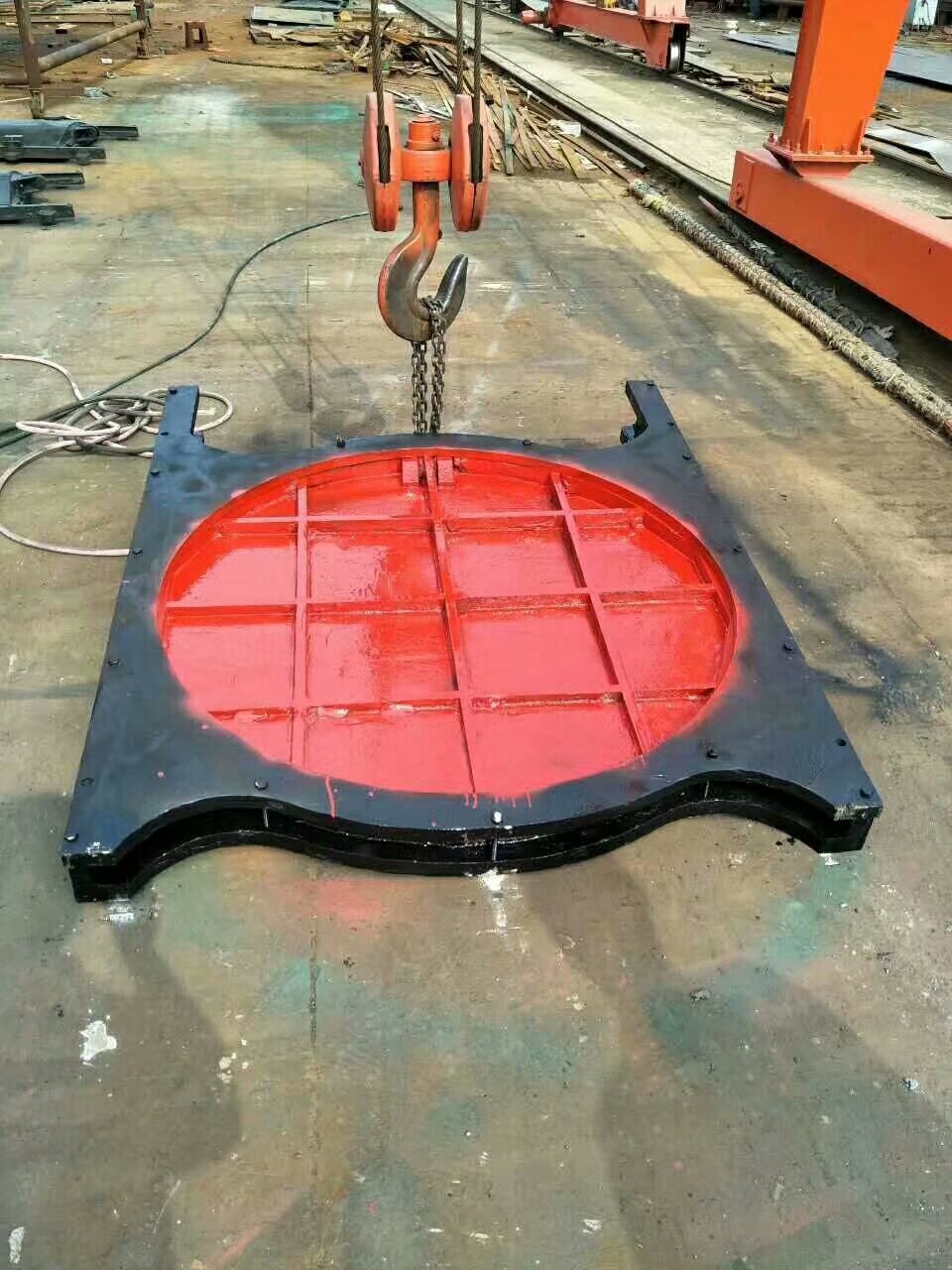 圓閘門由門框、閘板、導軌、密封條、可調整密封機構等部件組成。具有結構簡單,密封性能好,耐磨性強,操作簡單,安裝方便,使用壽命長,規格齊全,適用性廣等特點。(該系列產品鑄造時可以根據客戶需要加鑲銅或單雙向止水)