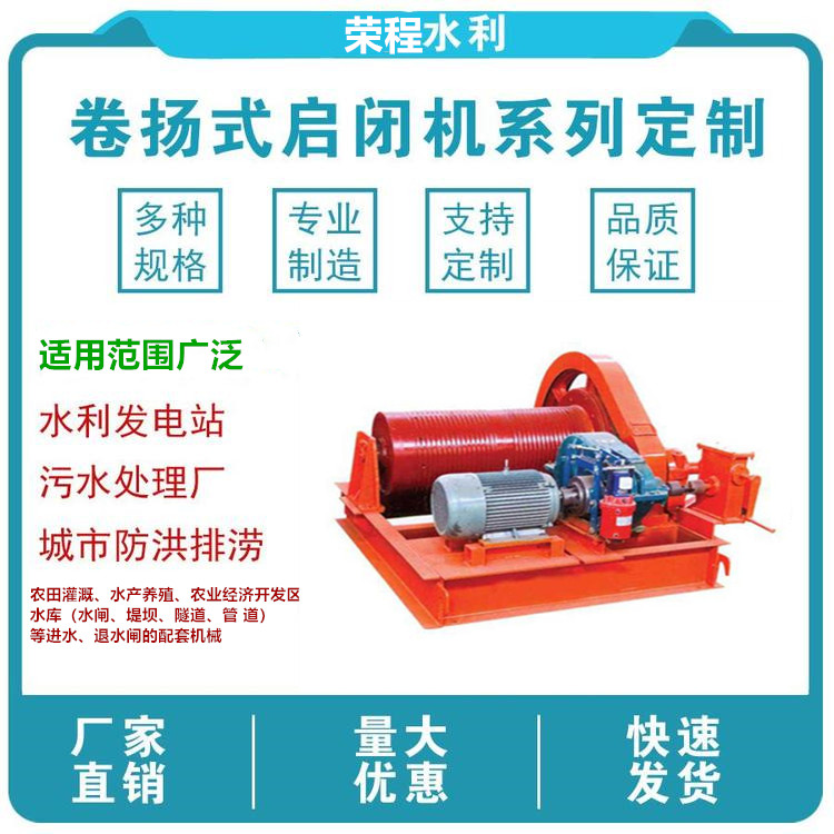 卷揚啟閉機又分為:平門卷揚式啟閉機;弧形門卷揚式啟閉機;雙吊點卷揚式啟閉機;快速卷揚式啟閉機;移動式臺車啟閉機;雙吊點卷揚式啟閉機分為:集中驅動和單獨驅動兩種;卷揚式啟閉機手搖、電動兩用式規格分為:5噸、8噸、12噸、16噸、25噸;電動式規格分為:40噸、63噸、80噸、100噸、125噸、160噸、200噸,可以根據用戶要求設計,并能生產雙吊點卷揚式啟閉機,該機是一種水利工程專用機械,廣泛用于水利工程閘門的啟閉,是農田灌溉、水產養殖、農業經濟開發區、污水處理廠、水利發電站、水庫(水閘、堤壩、隧道、管 道)等進水、退水閘的配套機械,山區、平原有、無電地區均可使用。