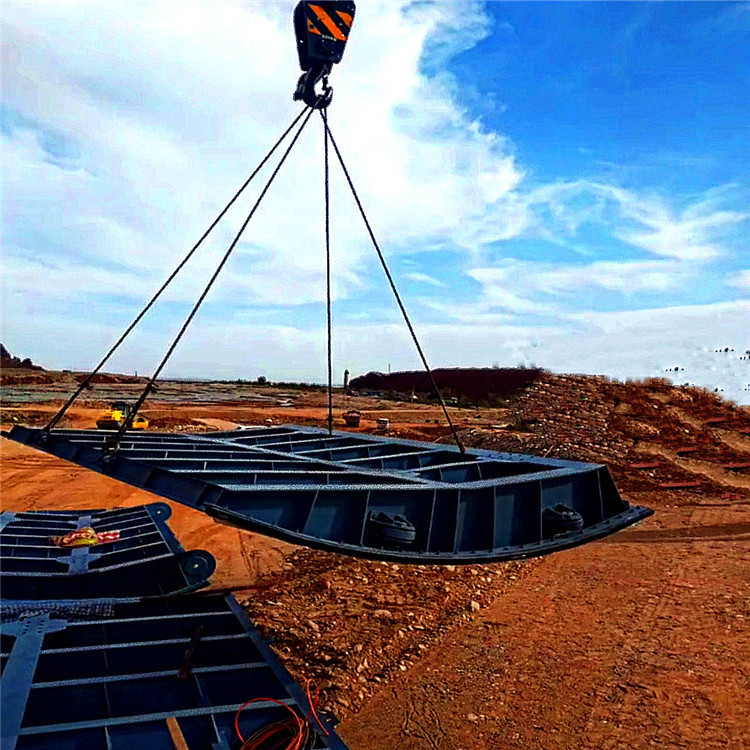 露頂式鋼閘門結構特點:門頂露出上游水位以上,沒有頂止水,只有側止水和底止水,面板曲率半徑R一般取門高的1.0~1.5倍。