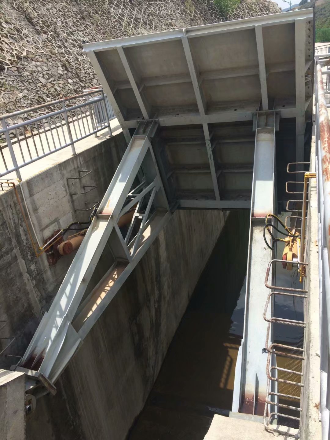 弧形鋼閘門系統(tǒng)采用液壓缸驅(qū)動,壩體坍塌可完全擱置在地板上,不堵水。當(dāng)水被阻塞時,擋水板由閘門后面的支撐框架支撐,氣缸返回活動柱塞,從而有效地保護柱塞免受腐蝕。這種新型門結(jié)構(gòu)獲得了國家發(fā)明專利。弧形鋼閘門是目前設(shè)計合理的閘門之一。安裝、操作和操作方便。可自由調(diào)節(jié)水的高度。它不受河流寬度、地理和氣候條件的限制。使用壽命長達50年。
